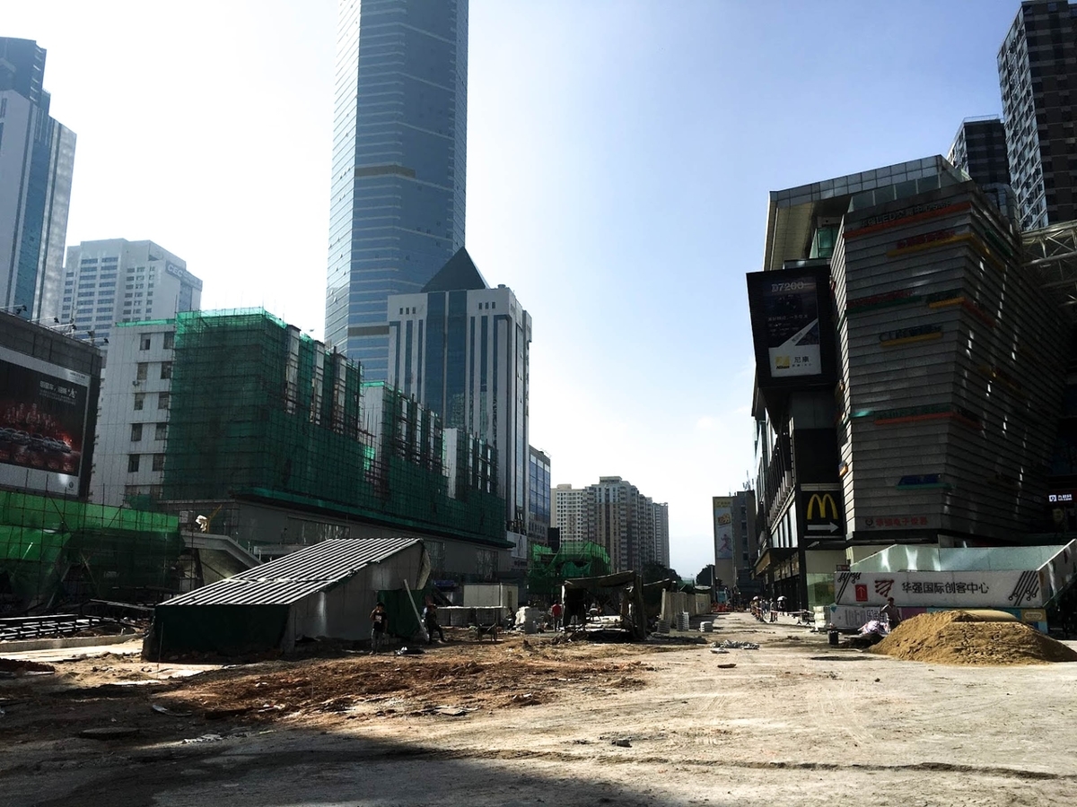 三つ目の理由としては、ある意味実験的な都市である、深センとしての特異性が考えられる。同じ中国でも、北京や上海では、深センほどは WeChat ペイが普及してないと聞く。深センは40年前はただの農村であったが、そこが経済特区となり、人が集まり、短期間に大きく開発が進み、破壊と再生を繰り返しながら進化している。ファーチャンペイの中心の大通りは、すべての道路をぶちこわして交通インフラを止めてでも大規模な地下鉄の開発が行われていた。私が深センについた日はがれきだった道が、帰るときには新しい道路へと整備されていた。働く人も、大抵10~30代の若者だ。そんな混沌とした街だからこそ、今までに無かった物がサッと受け入れられ伝搬しているのではないのであろうか。